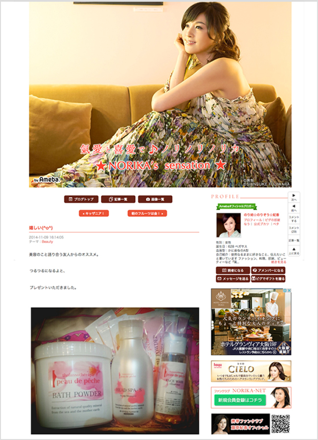 藤原紀香さん公式ブログ『氣愛と喜愛で♪ノリノリノリカ ☆NORIKA´s sensation☆』