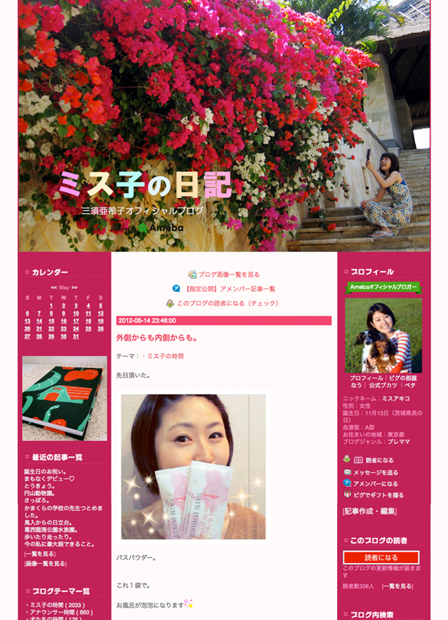 2012年5月14日の投稿にて、ポードペシェ バスパウダーを紹介いただきました!とても笑顔のステキな爽やかな女性です~!